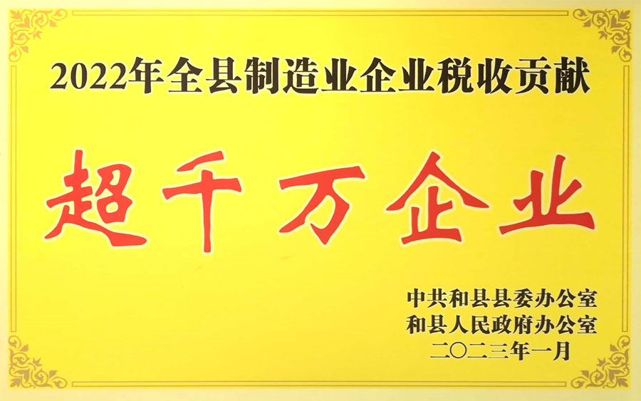 為弘揚(yáng)先進(jìn)、樹立典型,和縣縣委、縣政府決定對(duì)2022年度全縣制造業(yè)企業(yè)稅收貢獻(xiàn)超千萬元企業(yè)進(jìn)行表彰,并在會(huì)上進(jìn)行了通報(bào),華星公司榮獲“2022年度全縣制造業(yè)企業(yè)稅收貢獻(xiàn)超千萬元企業(yè)”榮譽(yù)稱號(hào)。